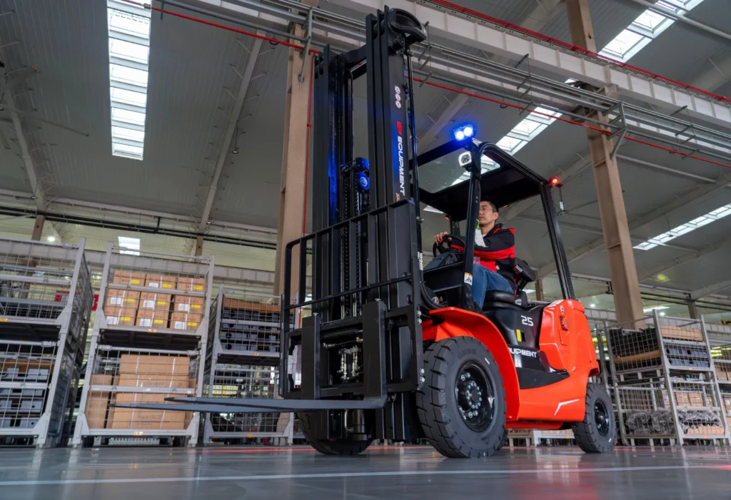 De EFL25 PRO elektrische heftruck van EP Equipment is voorzien van een hefcapaciteit van 2.500 kg. Met laadvermogens van 2,5 tot 3,5 ton, een geïntegreerd lithium-ion-accusysteem en een robuust chassisontwerp biedt PRO-serie de kracht en het uithoudingsvermogen van een heftruck met verbrandingsmotor, gecombineerd met de eenvoud en milieuvoordelen van elektrische technologie. De EFL Pro-serie is geschikt voor zowel binnen- als buitengebruik en is de complete oplossing voor bedrijven die overstappen op groene bedrijfsvoering.