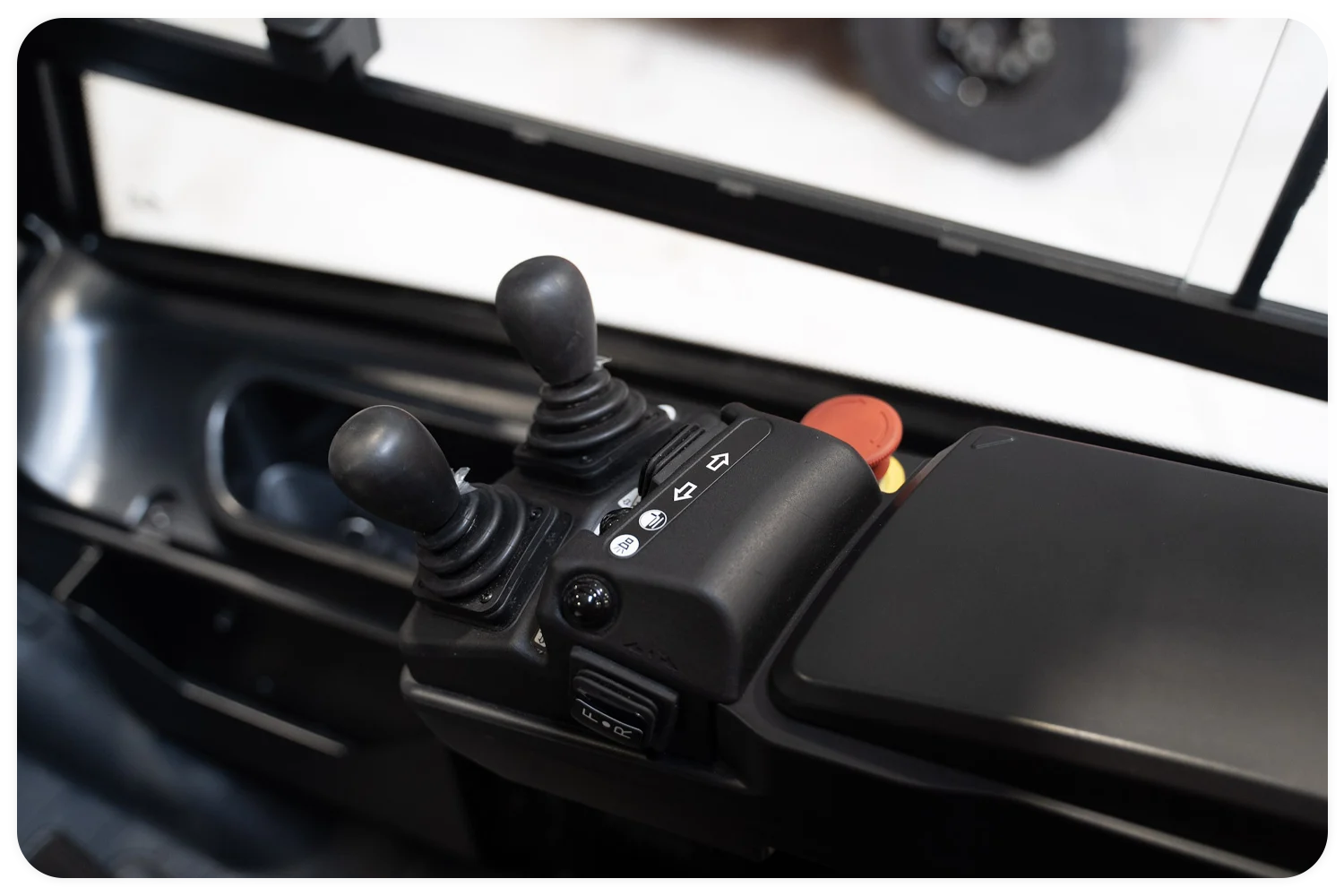 - De chauffeur zit op een comfortabele geveerde stoel.
