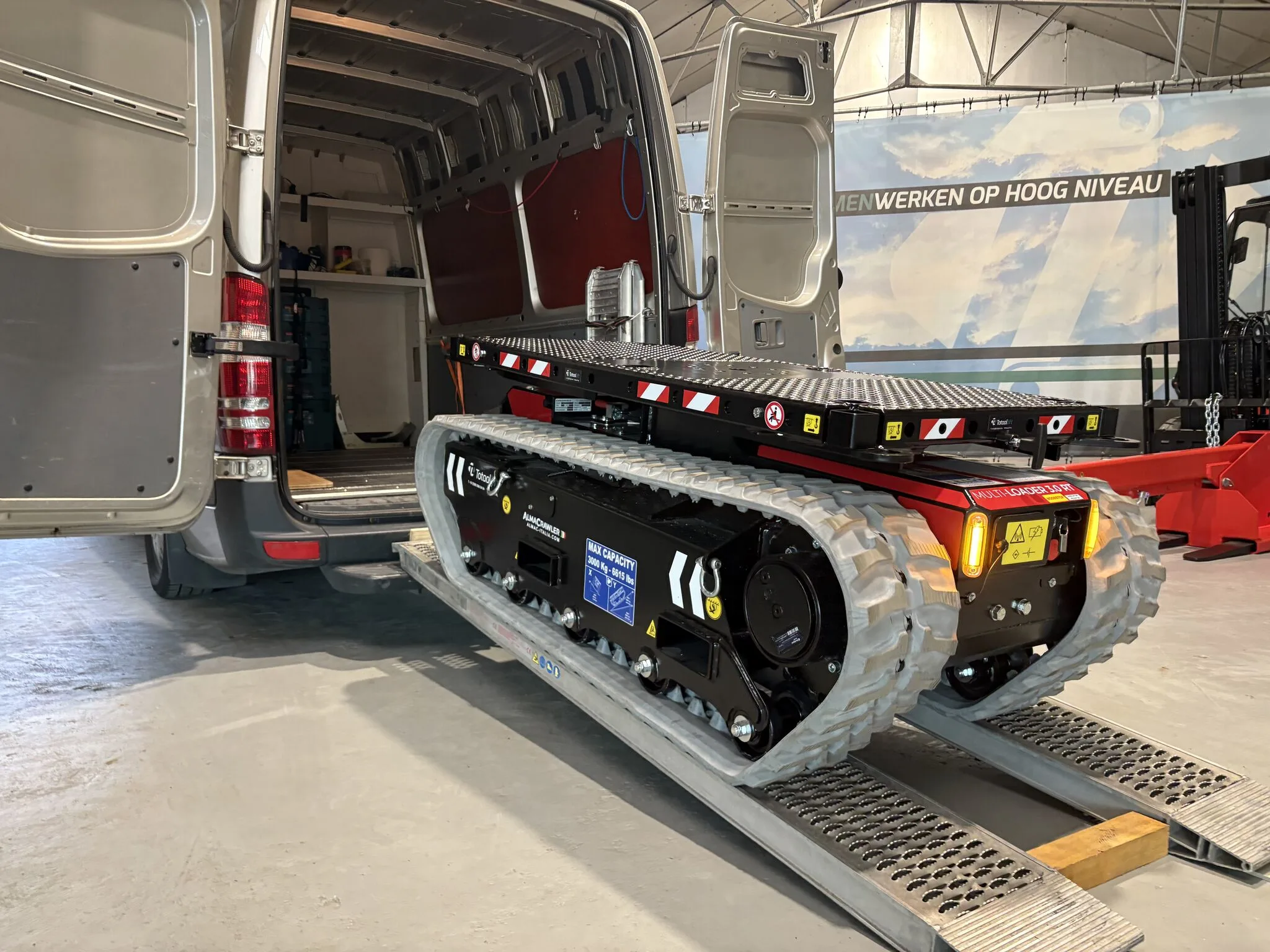 De AlmaCrawler Multiloader 3.0 RT is ontworpen voor het echte werk. Dankzij de grote bodemvrijheid en het rupsonderstel manoeuvreert de machine moeiteloos door zand, modder, gras en andere uitdagende ondergronden. Geen terrein is te zwaar en geen klus te complex. Een echte aanwinst voor het team!