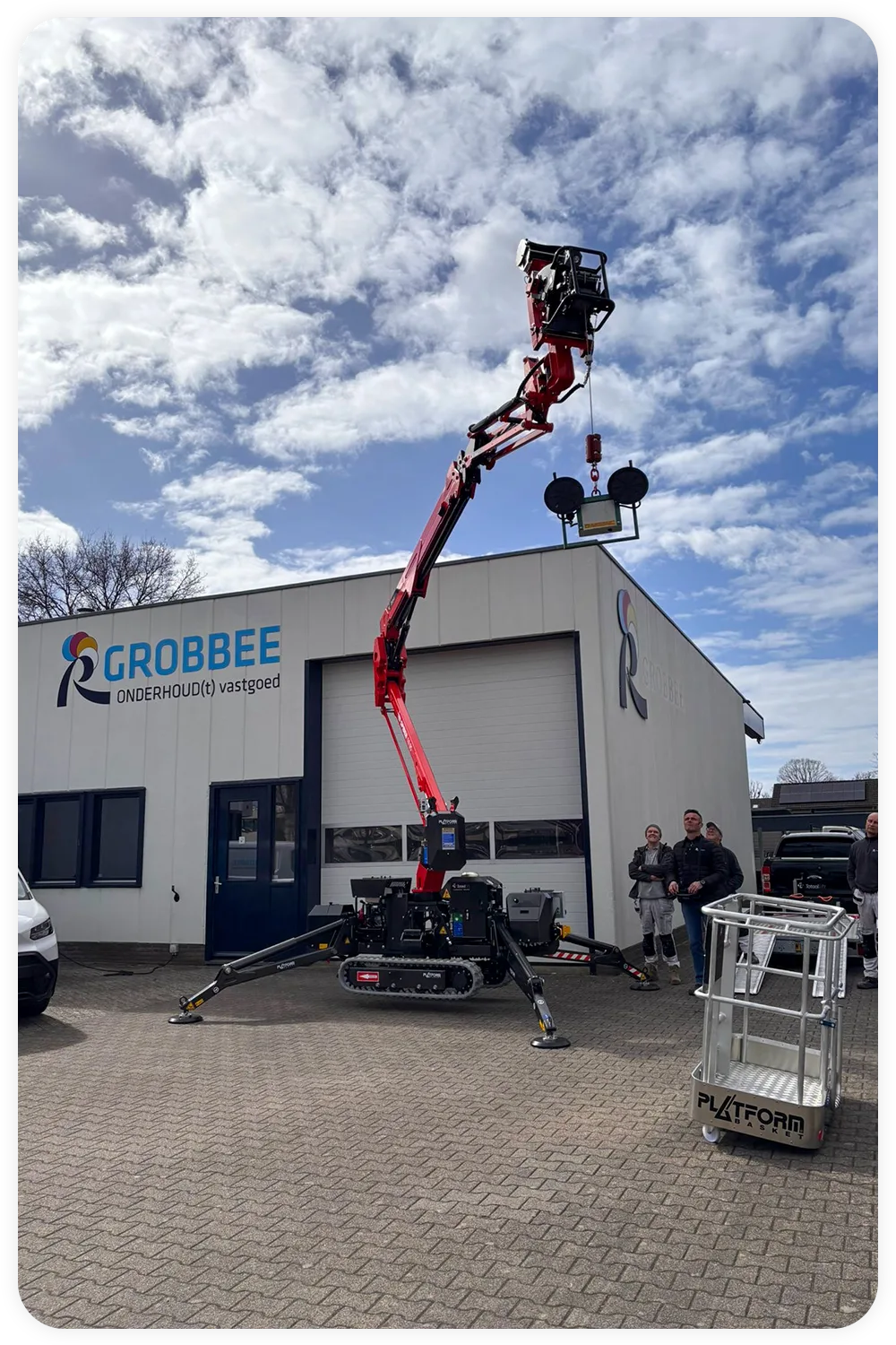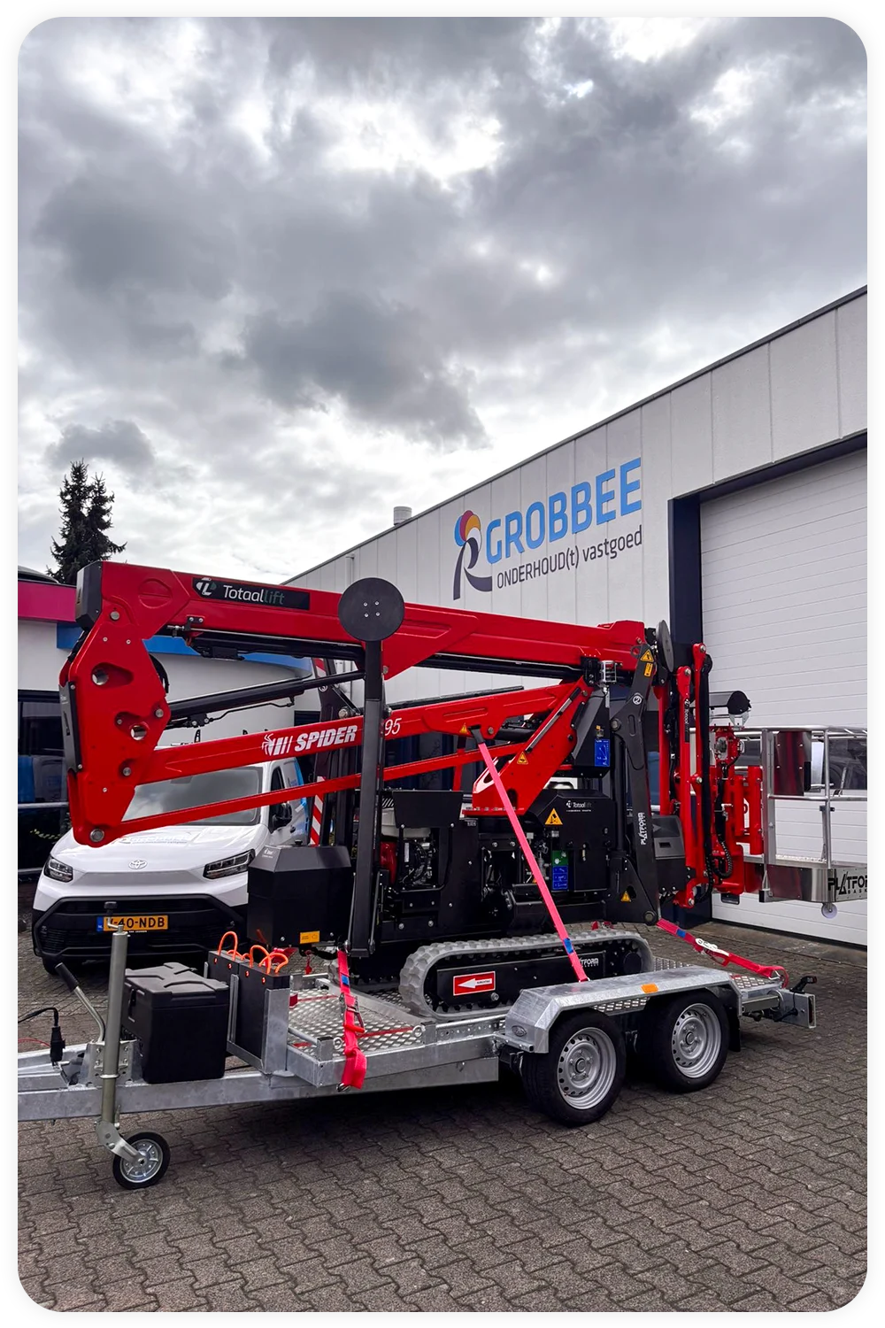 Onlangs hebben we weer een mooie machine mogen afleveren in Dalfsen. Grobbee, al jarenlang een tevreden gebruiker van Platform Basket spinhoogwerkers, heeft hun machine ingeruild voor een gloednieuwe Spider 18.95. De machine werd compleet geleverd inclusief lier en bijbehorende aanhangwagen.