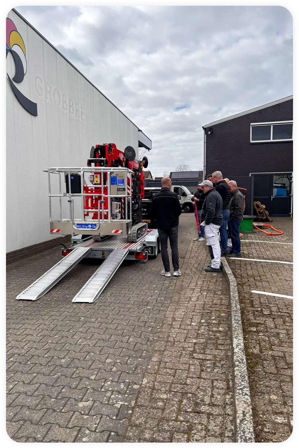 De keuze van Grobbee voor deze nieuwe machine onderstreept de jarenlange tevredenheid over het merk Platform Basket. Bij de aflevering op locatie in Dalfsen nam onze collega Sven uitgebreid de tijd om instructies te geven over de werking van de machine.